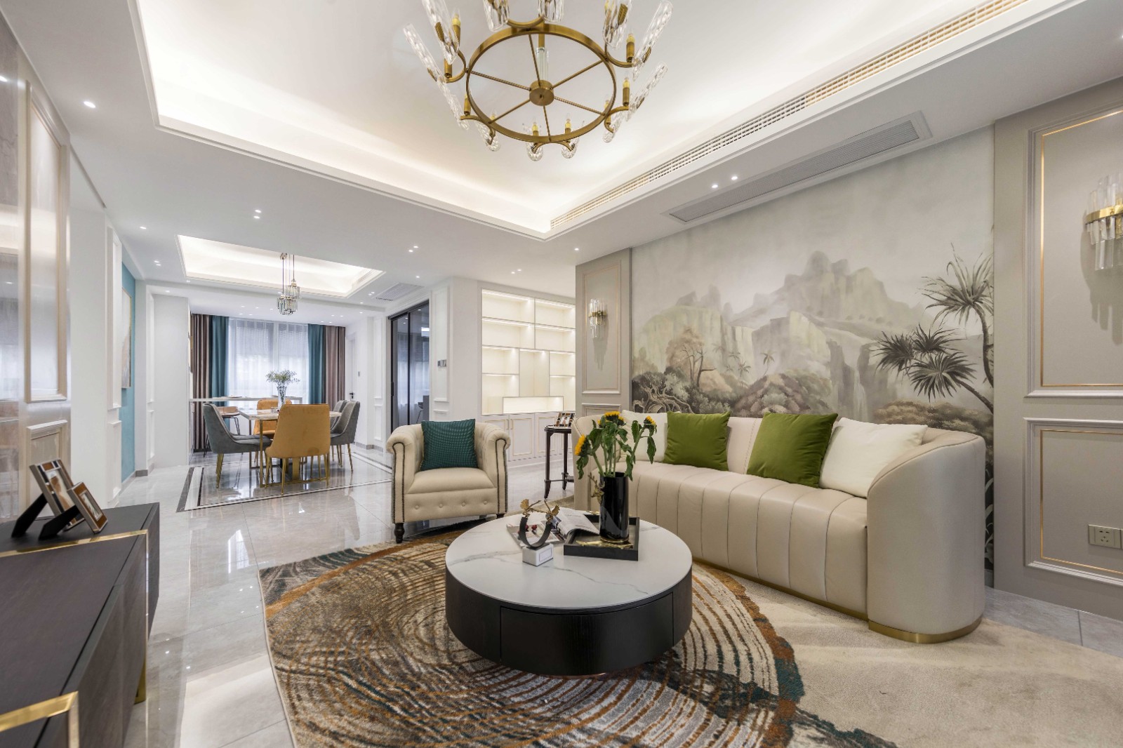 沙发背景墙采用大幅的美式西画,轻易营造出景深丰富、文雅诗意的深情。