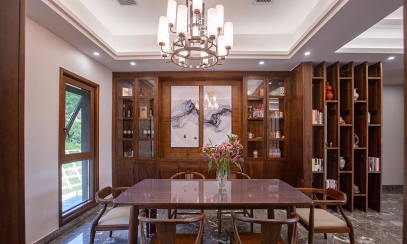 餐厅没有具象的堆砌,而是对中式元素的精简提炼。餐边柜的设计中规中矩,正中间的装饰画使整个空间不再沉闷。在这种符合现代生活方式的空间环境中,细品五谷杂粮。