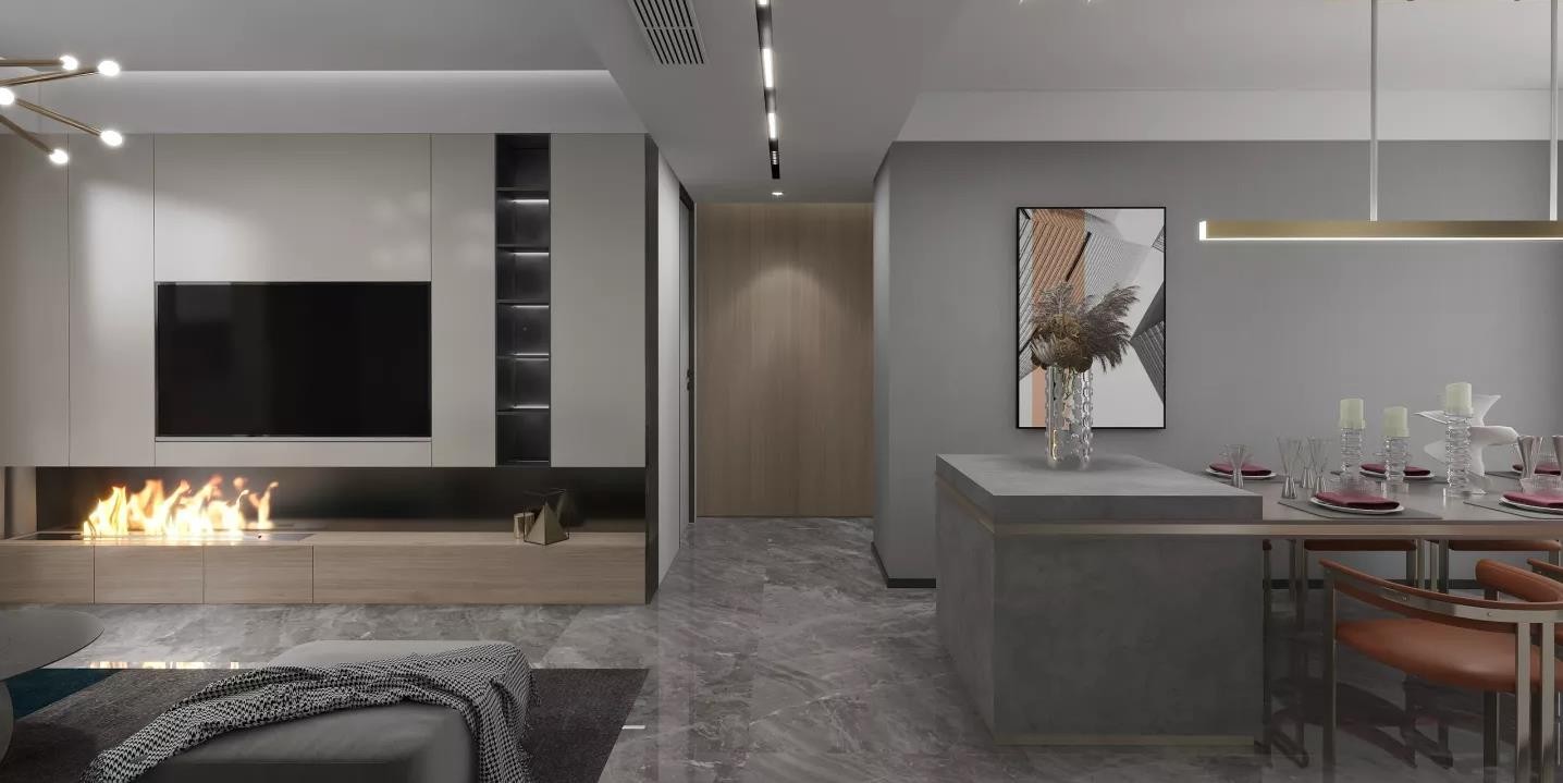 这是一所现代两局带外露的格局整体风格是现代轻奢 主体格调是灰色调调