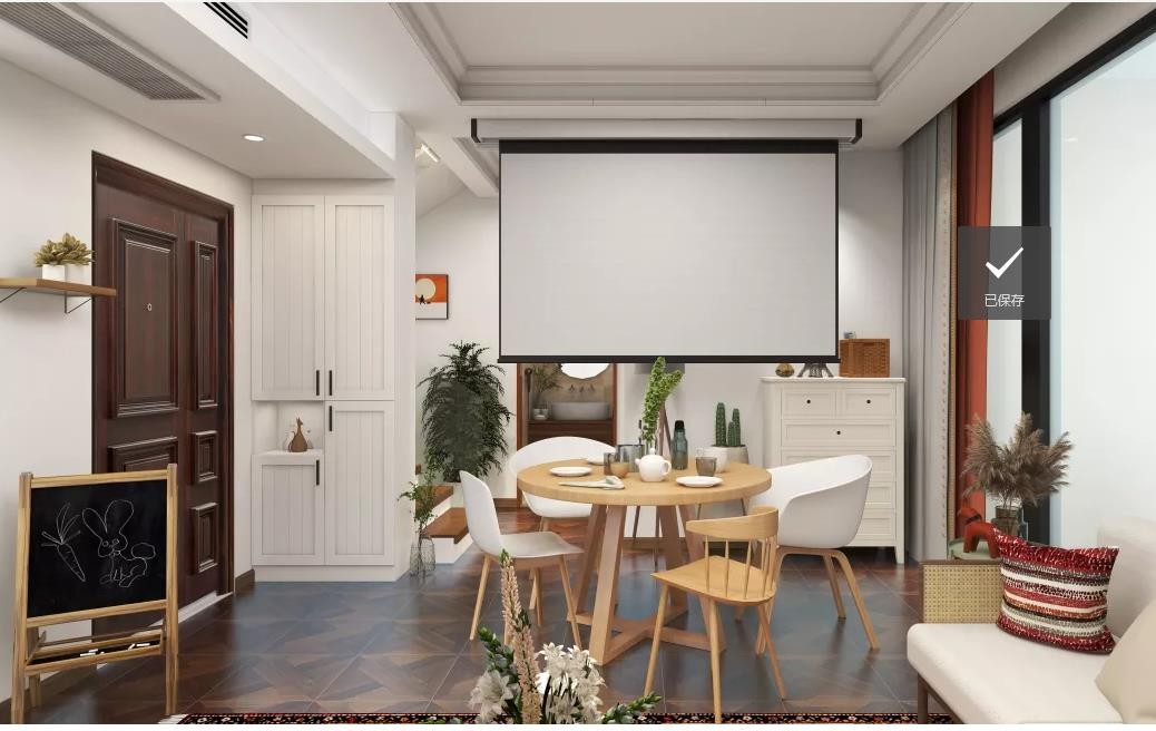 客厅和餐厅在一起,平时看电视的话就用投影仪