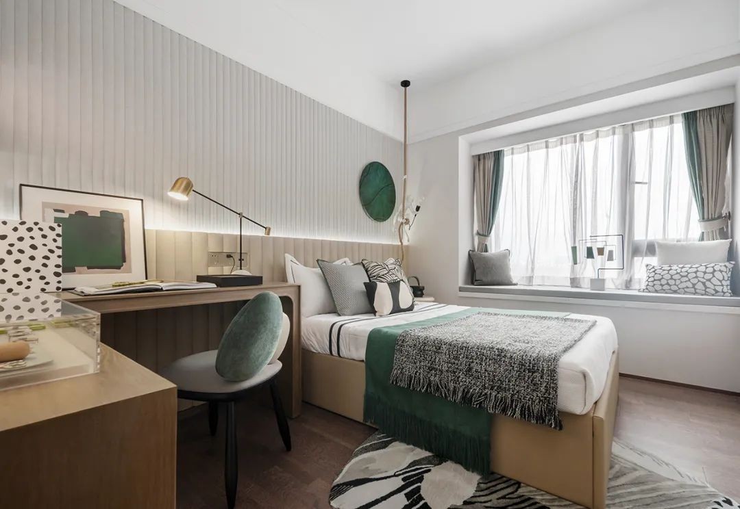 孩子房围绕11岁男孩的居住角色的设定,温润雅致的木色,随处可见的昆虫标本,让大胆而舒适的配色,把卧室空间带入一个自然生动的童趣世界。