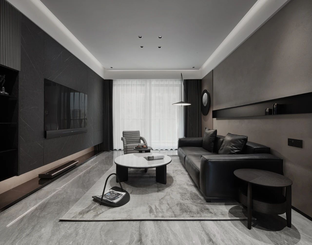 为保证空间的纯粹性,运用单纯的白与灰,支撑设计本质,关注结构关系的处理,让场域虚实交融,让空间扩容