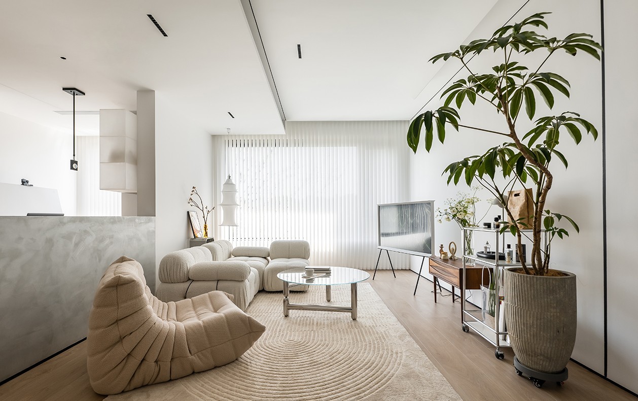 以白色做基调,配合原木的温暖与绿植的生机,将自然、盐系、节奏感、呼吸感等通通融入其中。带着对极简主义多样化的理解,走进这个看似没有那么极简的家。