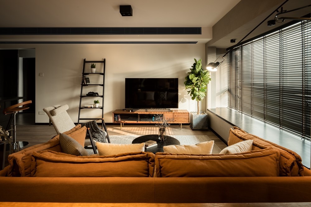 这是夜晚打灯的效果,温暖的暖黄光打在略深沉的浅灰上,营造出生活原有的味道,既不会让生活因为过多的灰色而单调也不会因为存在过暖的灯光而平平无奇。