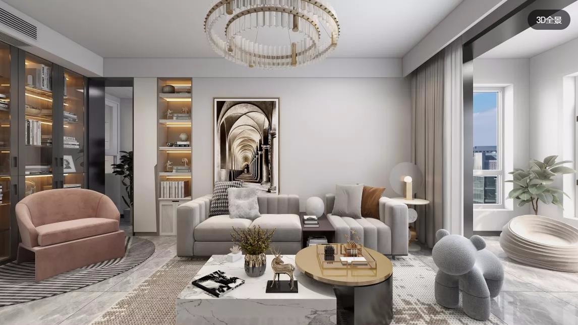 沙发采用意大利进口B&B品牌,侧面做玻璃平开门展示柜,采用大量得层板灯增加空间感,