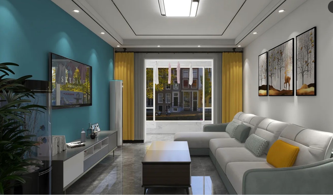 客厅用简单的色块来达到装饰效果
