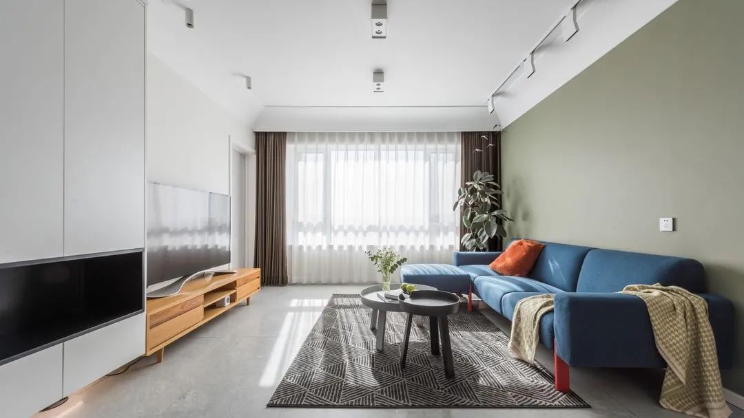 天然的橡木带来自然的清新感,整家色调以木色搭配白色为主,用低饱和度的莫兰迪色搭配,跳跃和谐