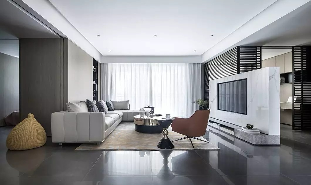 空间的功能性设计由生活而来,不为对立而生,互为因果相融。方正户型很容易引导设计进入一个误区,就是使用空间框架化,把空间的灵活性降低,这是对大户型的浪费,而我们这套设计就是尽可能开放整个区域,联通整个区间。
