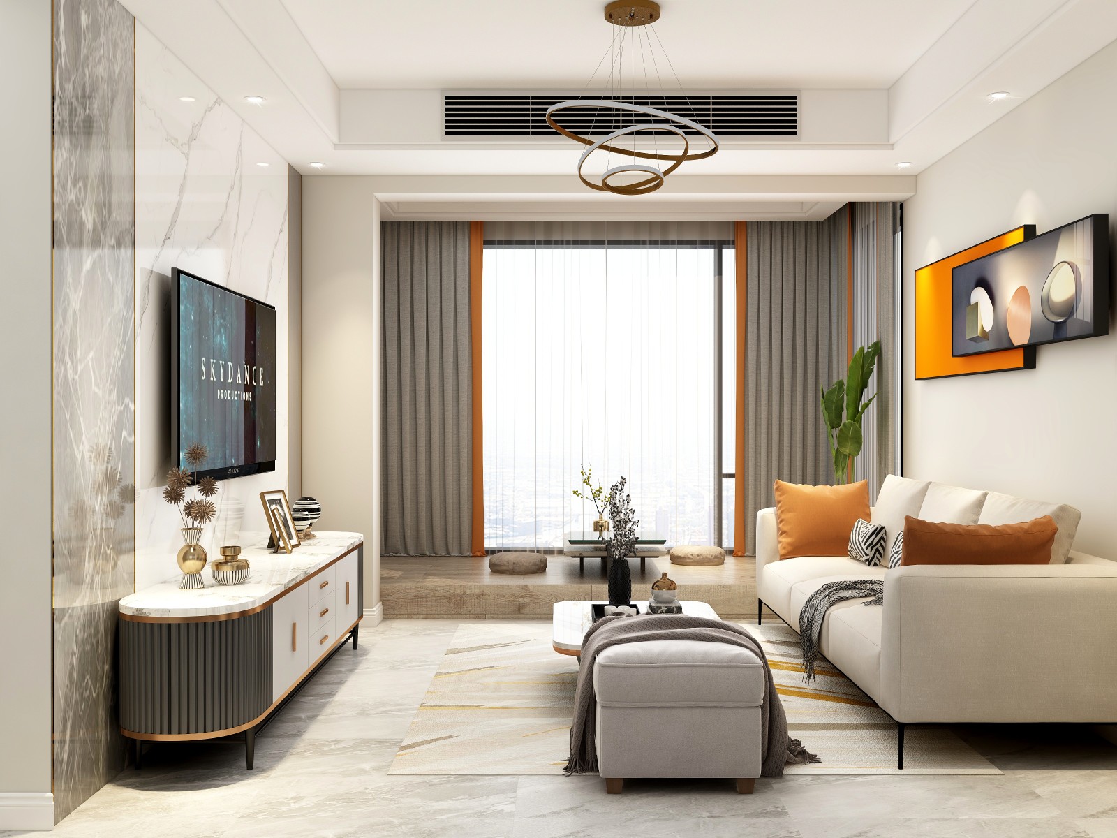 整体以暖色为主,加以跳跃色彩,整个空间更温馨时尚