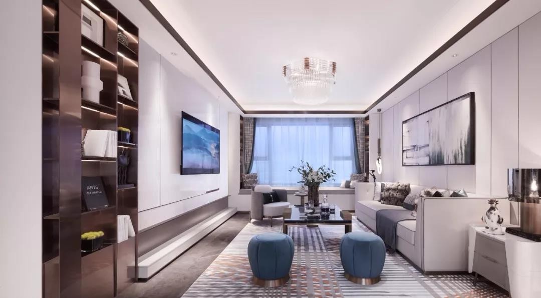 超大客厅设计,起居室与餐厅完全隔离,互不干扰;整体色调以白色系为主,打造一个宁静而舒适的家