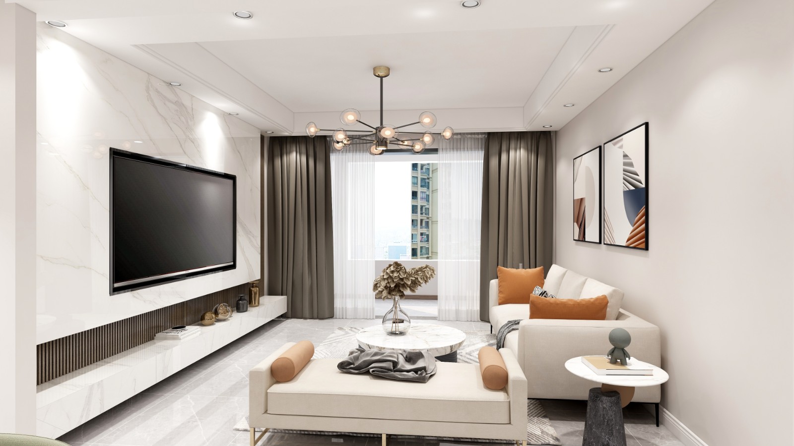 改造后的平面布置图,原始户型进户没有独立的鞋帽柜空间,厨房空间狭小,餐厅和门厅划分不明确,通过设计将餐厅部分独立出来,进户增加鞋帽柜满足收纳要求,厨房电器柜放到餐厅侧面,解放原厨房空间。装饰材质上选择仿石材,木格栅配搭乳胶漆效果,让整个空间温馨,简洁。
