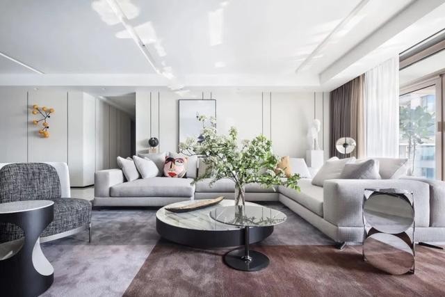 客厅整体空间现代大方,摆上一套浅灰色的布艺沙发,在宽敞的格局下显得充满优雅端庄的气质感。