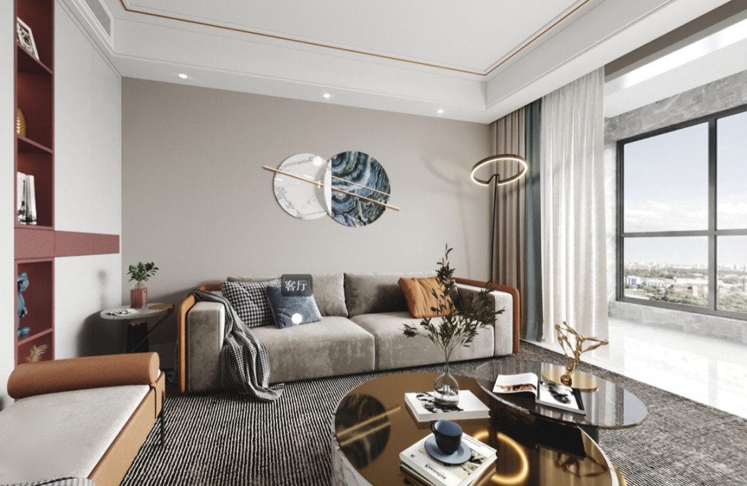 以镜面,金属等材质的质感和独特的属性,来拉伸整个客厅的空间感,并且保证了充足的光线和通透感。