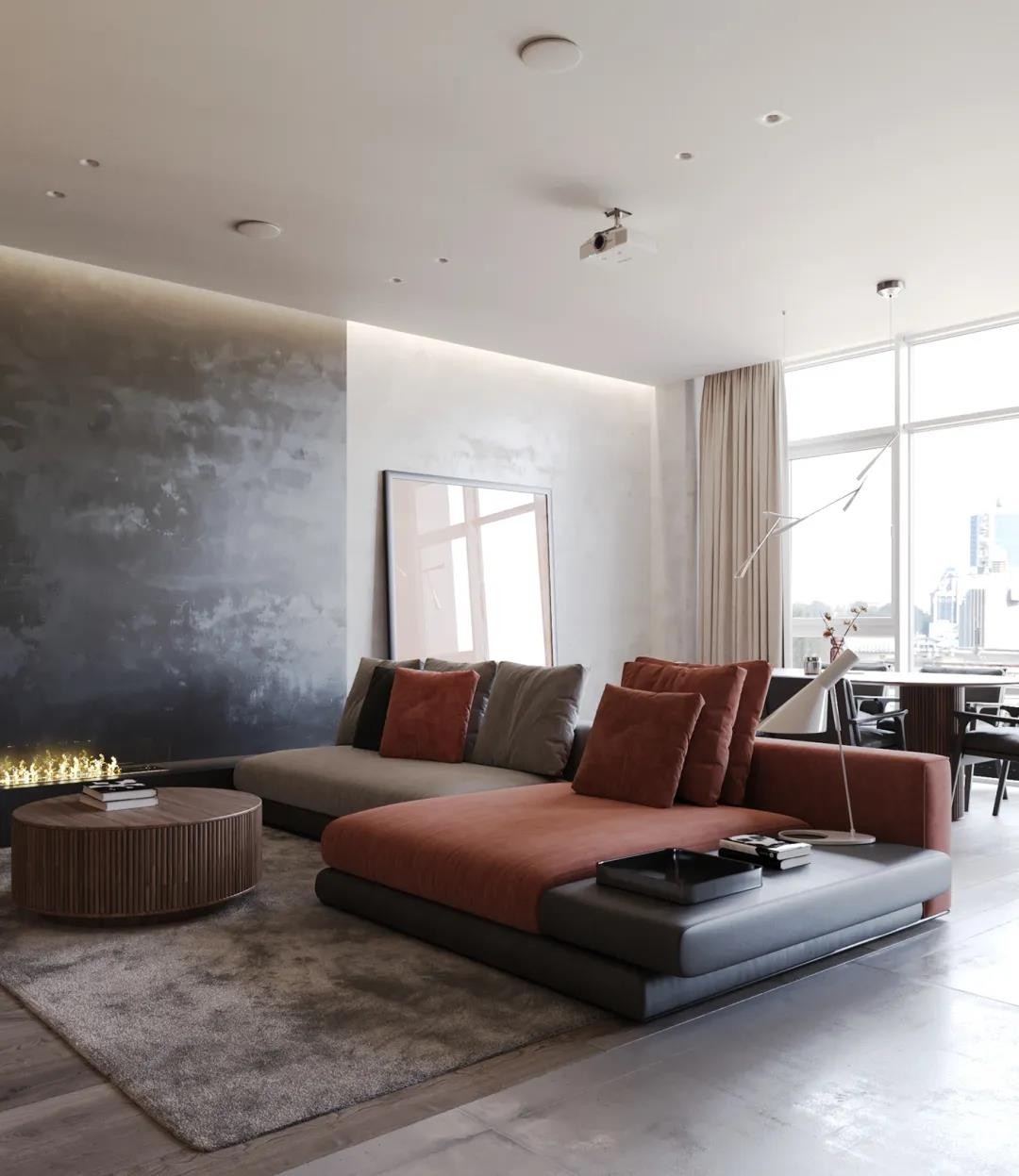 在这套180平米的现代简约风格装修案例中,整体空间保持***灰的基调下,各个点缀上橘色或粉色的浪漫装饰,在极简大方的空间下,营造出一种时尚***的氛围感。