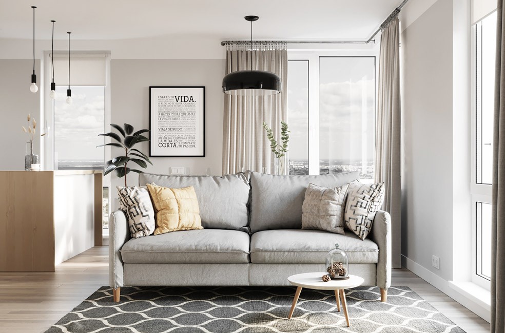 北欧风格色彩搭配之所以令人印象深刻,是因为它总能获得令人视觉舒服的效果--不用纯色而多使用中性色进行柔和过渡,即使用黑白灰营造强烈效果,也总有稳定空间的元素打破它的视觉膨胀感,比如用素色家具或中性色软装来压制。