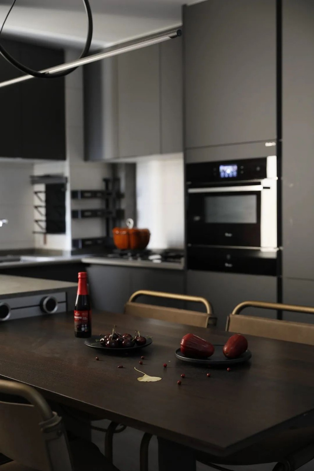 浓郁温暖的红打破暗色空间的沉闷增添活跃感,嵌入式电器与柜面齐平让柜面更加的完整,更符合现代人简洁大方的审美观。
