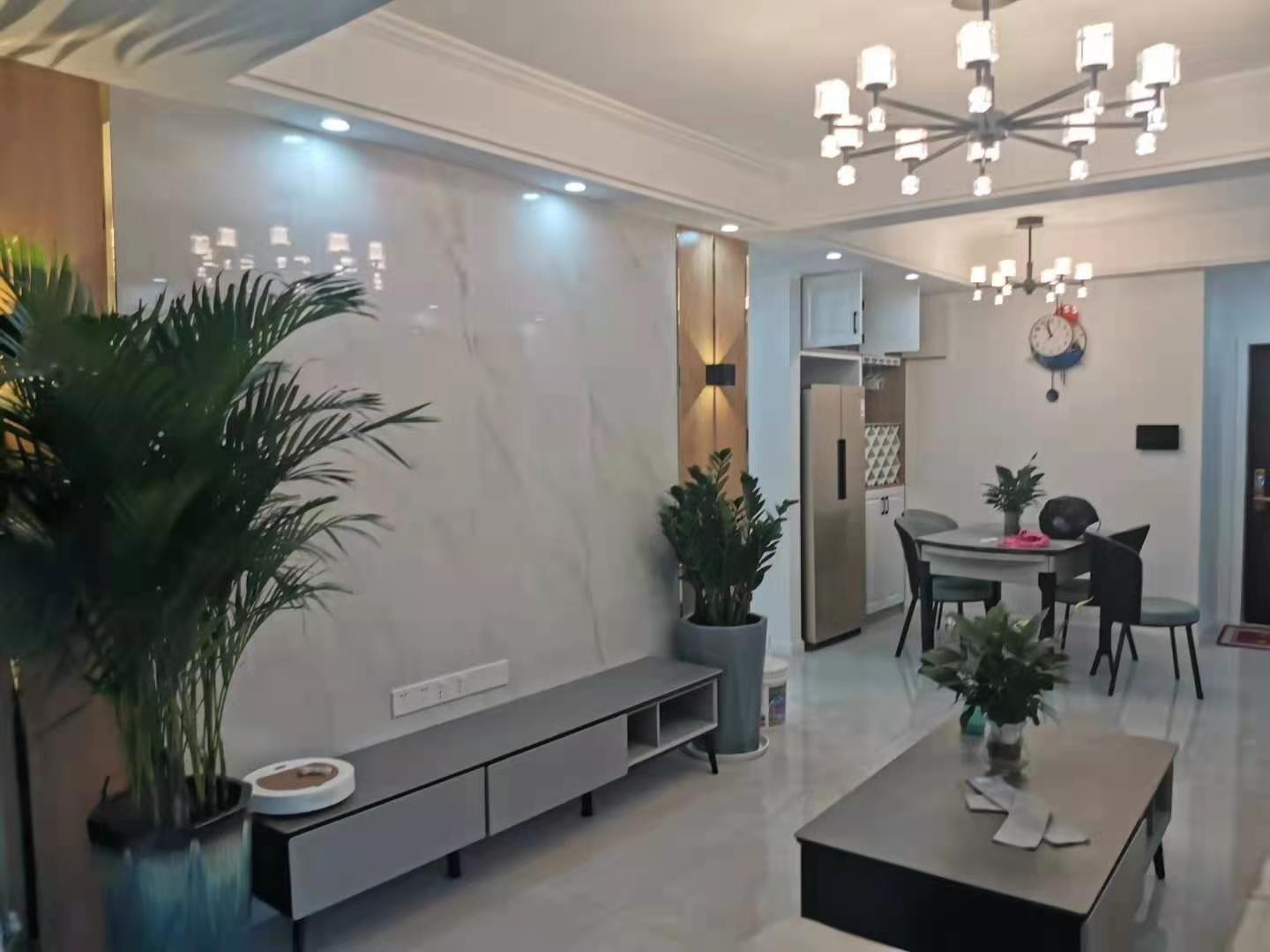 户型方正,但是厨房较小,所以考虑冰箱放在餐厅