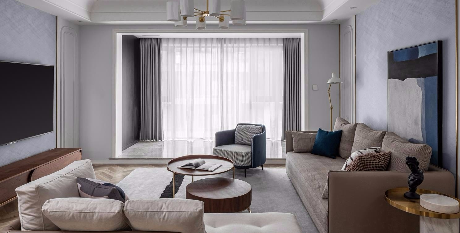 我们围绕着她的核心诉求,把重心放在空间氛围和收纳功能的规划上。弧形线条与直线型结构,藏蓝与沙色、黑色与大地色、棉麻与金属,通过大量对比设计呈现出屋主内心的多面性。再围绕着她的生活方式和居住动线将收纳功能平均分散到各空间,让一切的物品取用都触手可及。让整个居住空间兼具知美学与实用性,同时在视觉上更加统一协调。