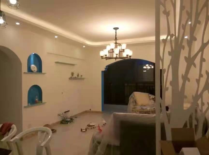 带有地中海风格的拱门设计,配上蓝色和铁艺灯点缀,显得简单又大气。