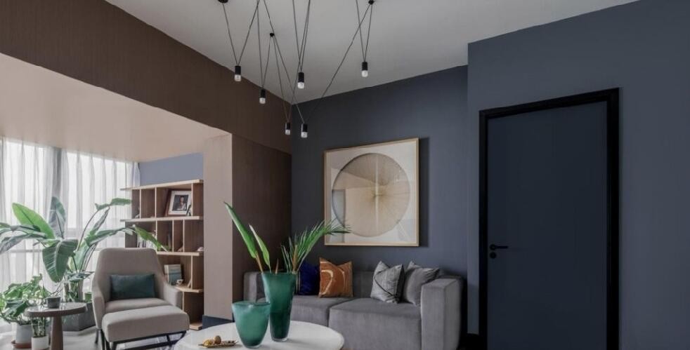 因为不满意没有灵魂的精装房硬装风格,她对原有的硬装进行了一些改造。她决定主色调用蓝灰色,蓝色是天空,是水,是空气,是深度和无穷,是自由与生命,蓝色是宇宙最本质的颜色,用温柔的奶茶色加以配合,整个空间散发着静谧又温暖的味道。