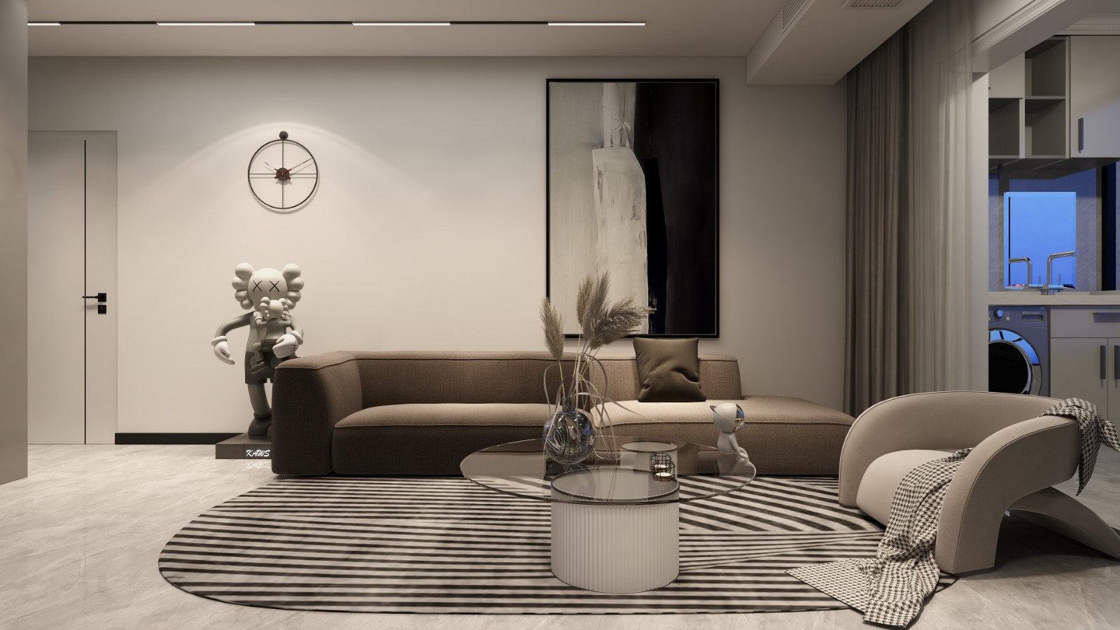 一尘不染素净澄明。用平静的心灵看世界,利用淡淡的家具布局把原有的空间净化,把气质和品位含蓄地表现出来……