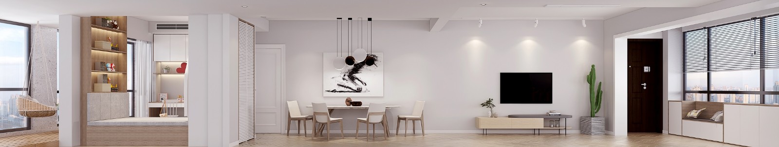 白色木色的搭配尽显空间感