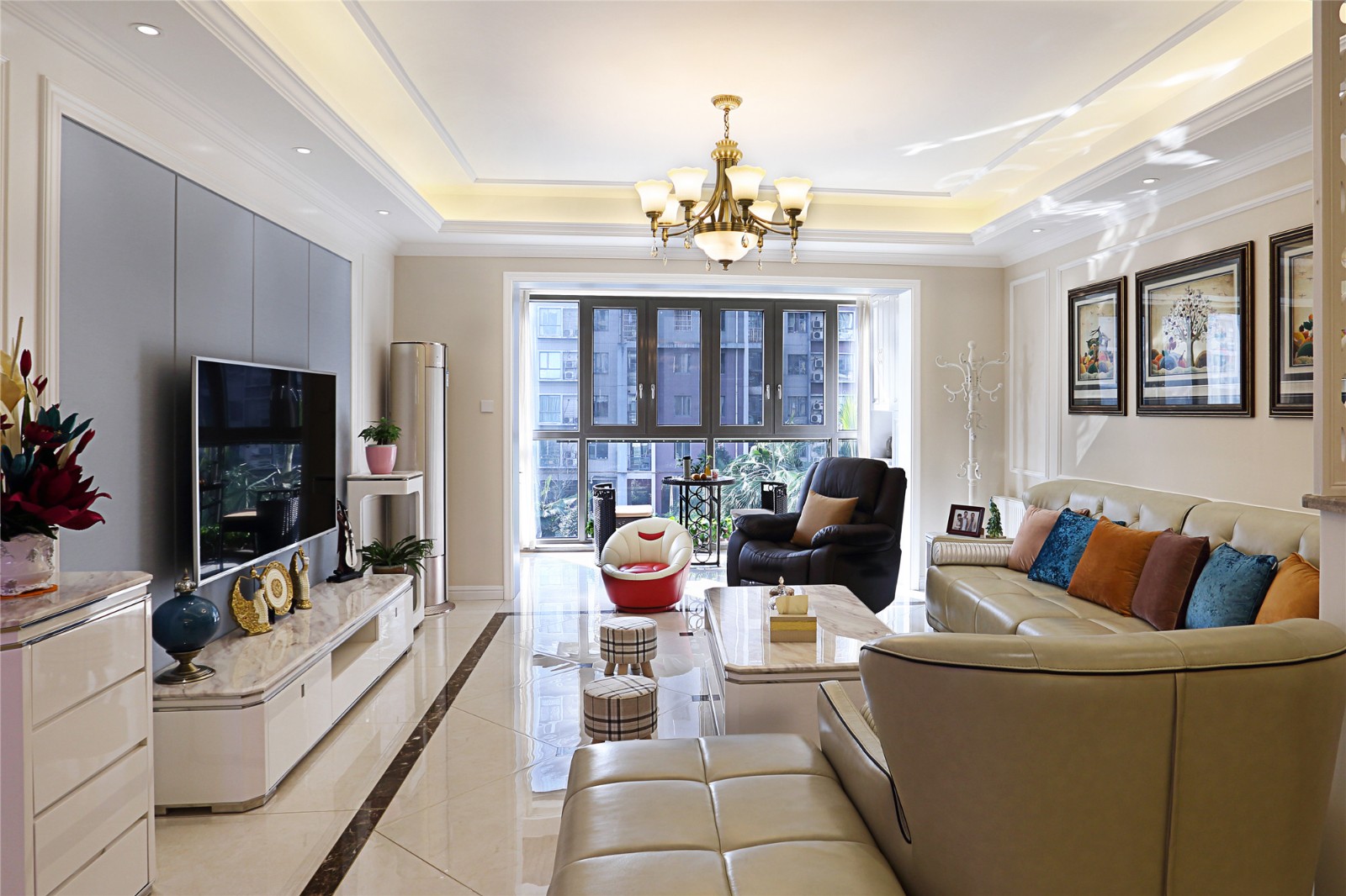 客厅 rawing room 温润柔和的白色 让空间保持创造力和生命力 背景墙的壁画 更衬托着整个家的活力 窗户照***的阳光 拥有开阔明亮的视野