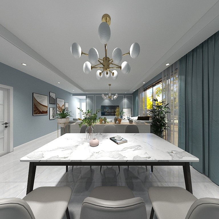 餐厅与客厅的有机结合,小空间,大视觉。宽大的平窗,带来宽阔的视觉感受,窗外景致一览无余,主人和绿植在家就可享受微妙的清风,和煦的暖阳。