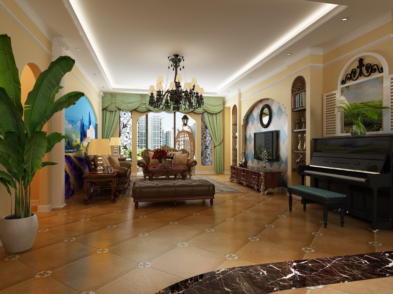 客餐厅阳台整体效果图。