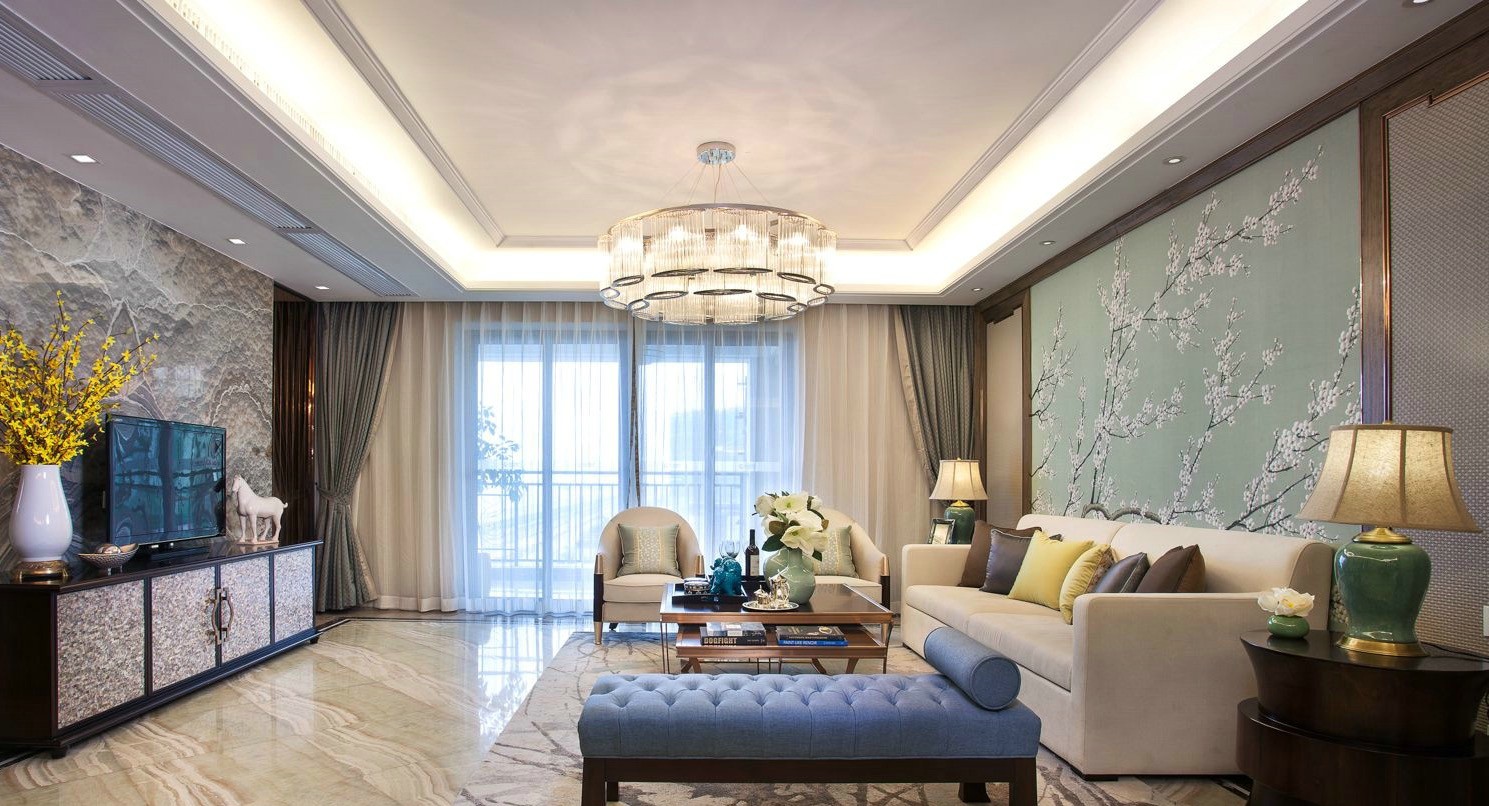 客厅:非常有韵味的新中式气息,华丽亮堂。