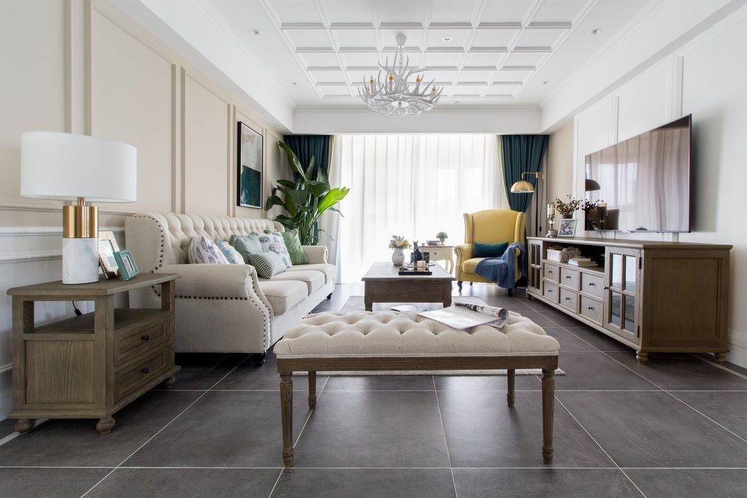 复古的家具,绿意昂让的***,非居中的挂画装饰,让美式空间的家休闲惬意。