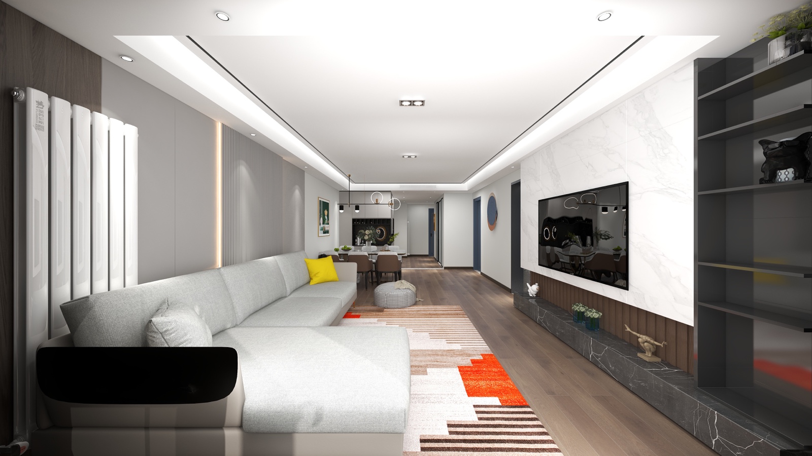 无主灯设计,不要茶几,方便小朋友玩耍