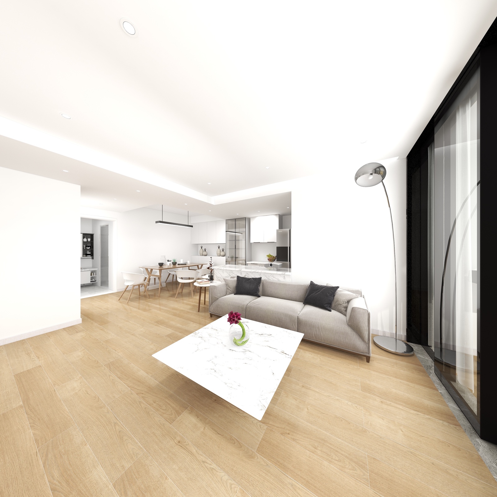 中央空调舒适实用,白色石材茶几