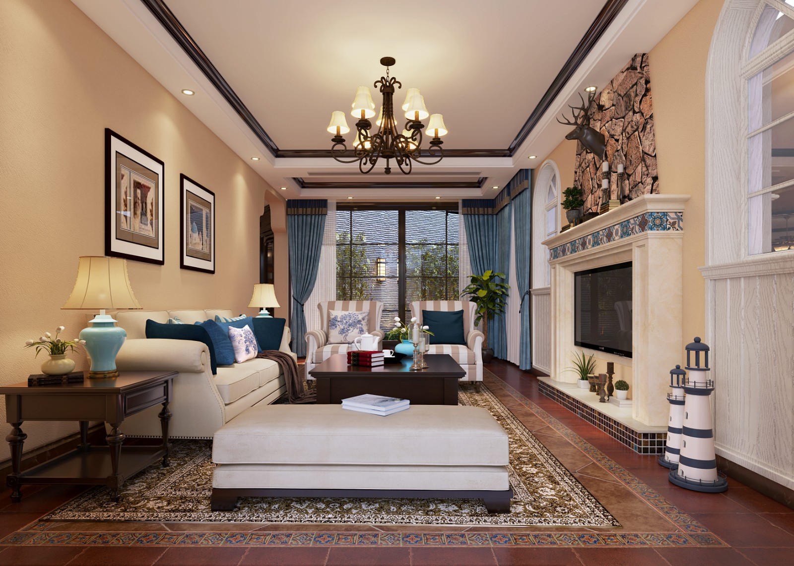 轻奢优雅的美式是与自然,浪漫,多元特性的融合,将美式打造浪漫与低调奢华,线条条理清晰,简约而有独特之特性的元素搭配,带些许复古,又使其设计温暖而舒适之感,使得美式风格宽大,舒适,杂糅不同元素而成。没有太多造作的修饰与约束,成就休闲式的浪漫美式风格。