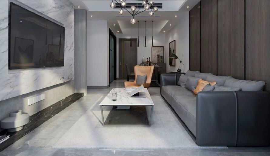 客户整体家里选用了白色乳胶漆,所以我选用更素一点以偏白色为主的大理石来做电视背景墙,以静制动