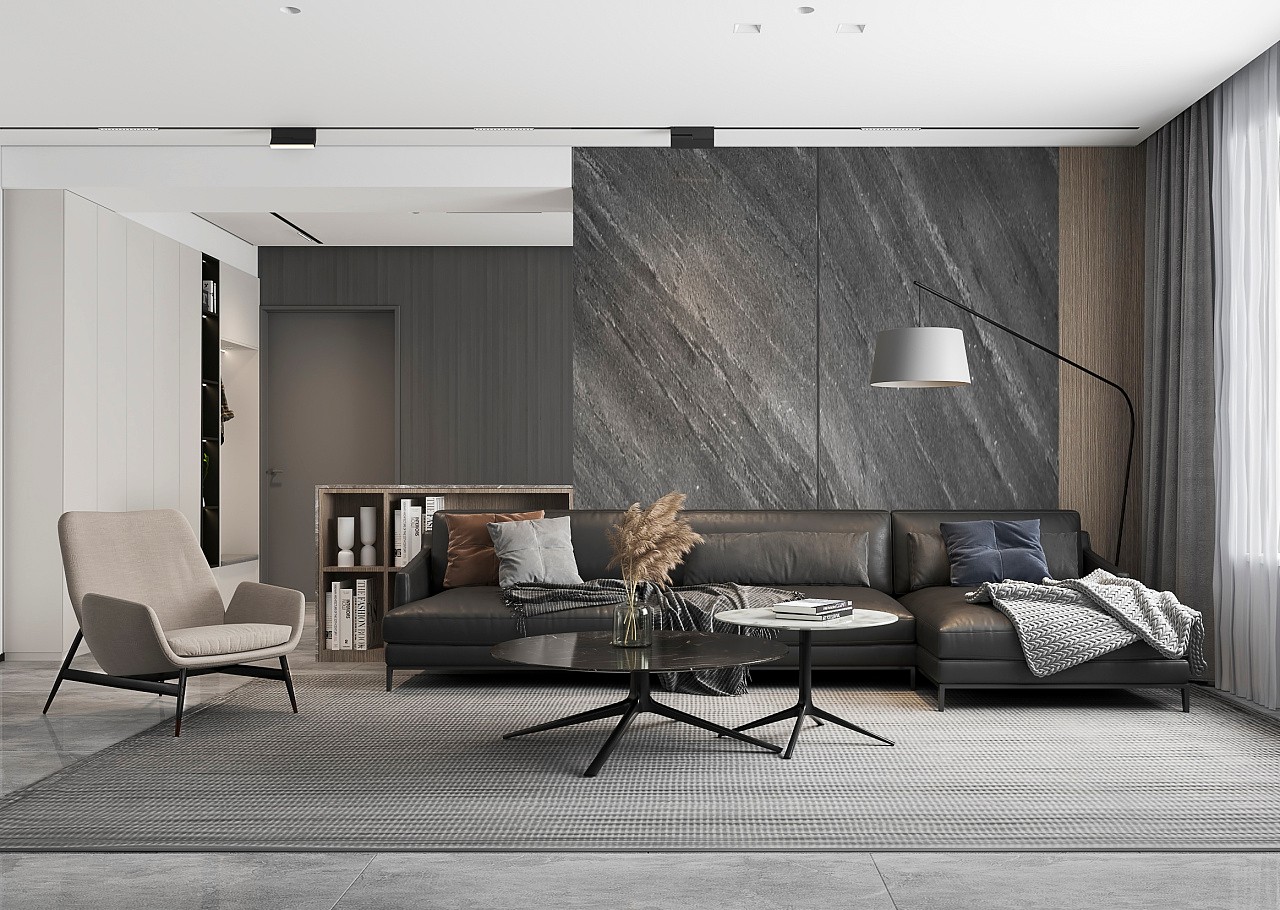 沙发背景墙一般镂空,既有空间分布,又有敞开式的感受