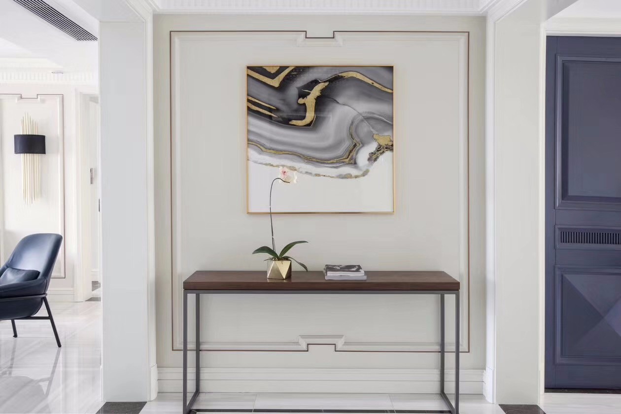素色的大理石背景墙加上素色的木饰面,用天条点缀,简约而不是简单。