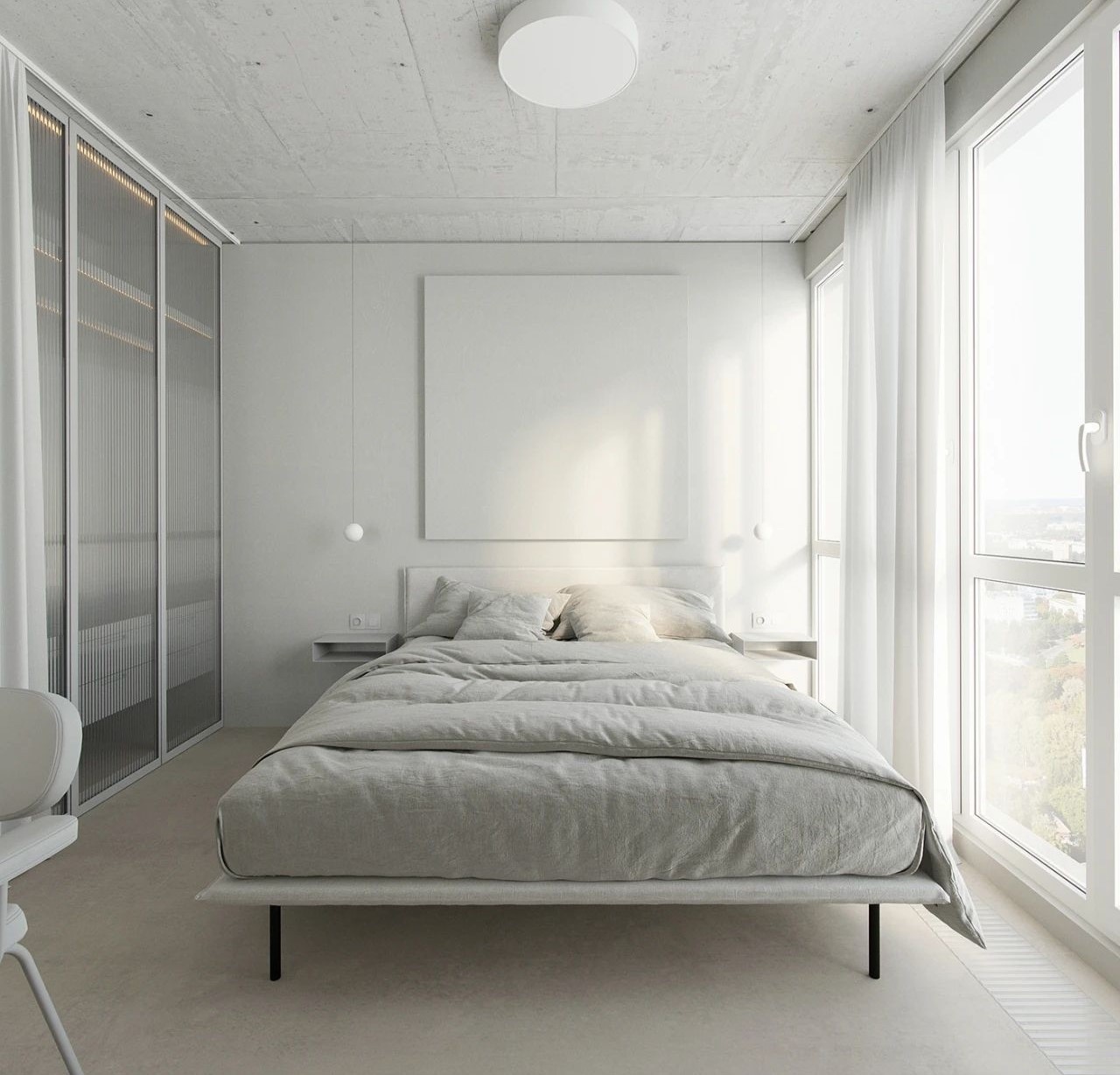 卧室背景采用留白的手法彰显艺术性和***感在光线的映衬下更为纯净
