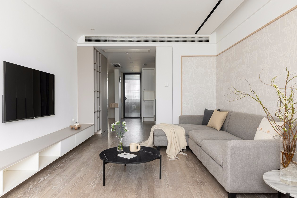 客厅采用无主灯设计,光源分散,让家更有氛围感.