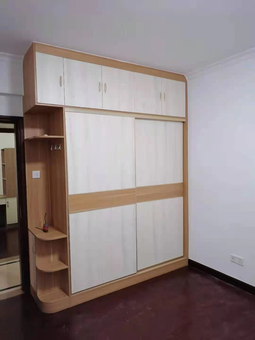 房子小不怕,衣柜照有,书桌照做,带个拐角,连放书的地方也有了,一举两得,使家更加整洁,更加的方便。