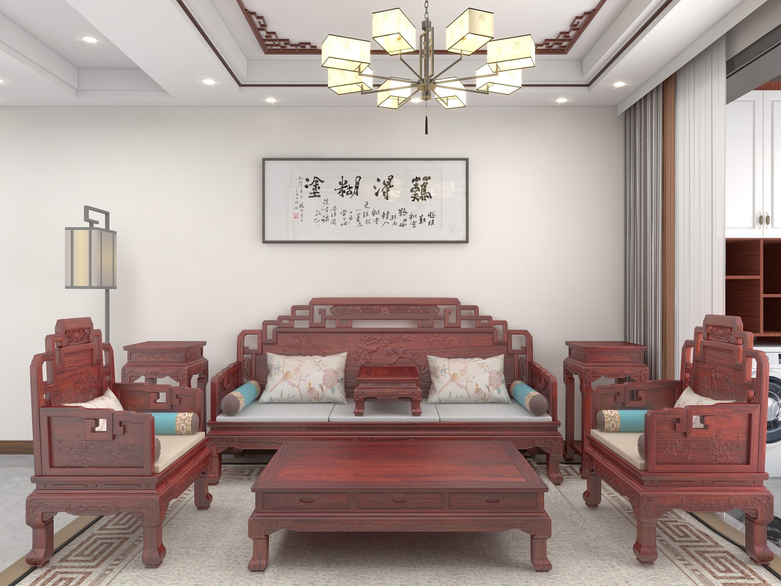 红木既不失古典风,又不失现代风,中式清晰的线条稳重的色彩让空间变得轮廓分明。