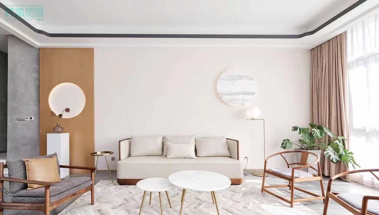 为了统一性定位为新中式风格。以简洁为基础切入中式的精神,透镜,留白都是本案用到的手法,轻,白,静是贯彻本案的主旨。