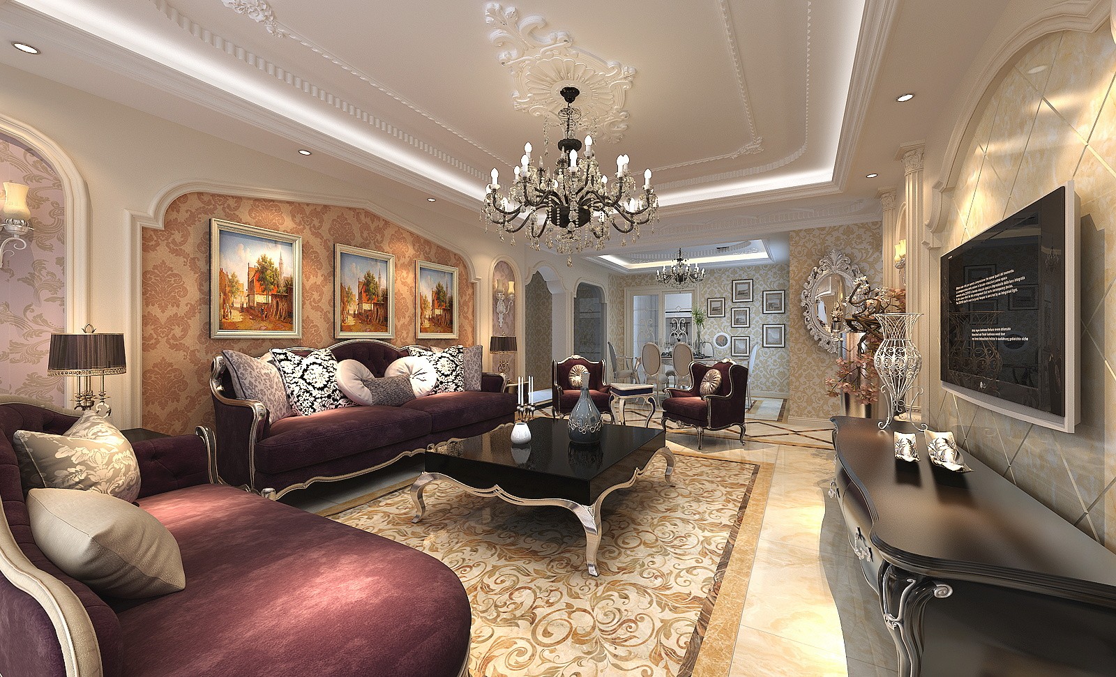 客餐厅用吊顶和灯具来进行区域的划分