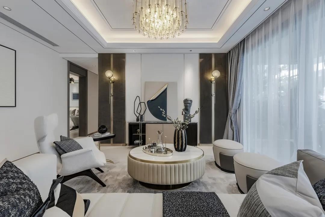 这是一套146平米的现代轻奢风格装修案例,整体空间以轻奢优雅的华丽氛围气息,通过端庄舒适的软装摆设布置,营造出一种轻松惬意的情趣居住气