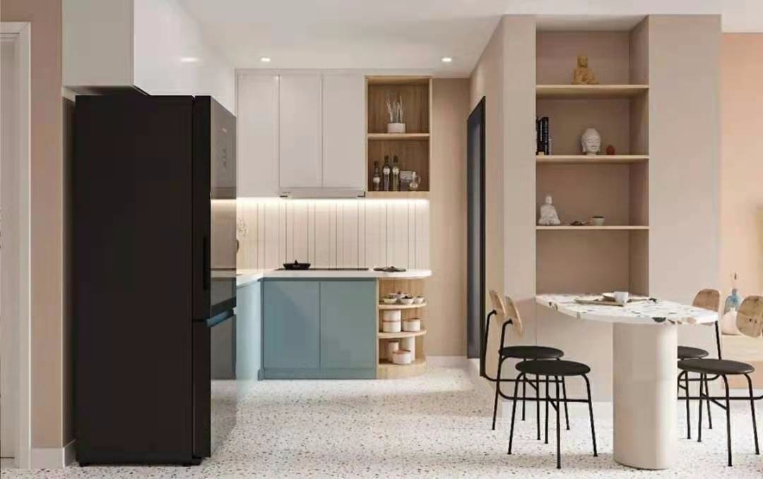 客餐厨全开放,充分引入采光,橱柜一端采用开放设计,不影响日常动线,又能拓展更多操作空间。