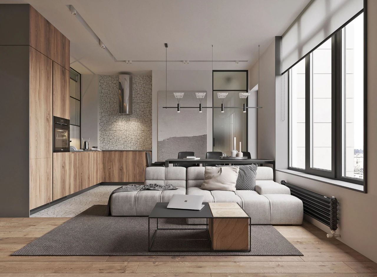 采用***灰为基调,搭配原木,石材,巧妙采用了一些灵活的设计,营造出了实用、整洁、干净、敞亮的生活空间。