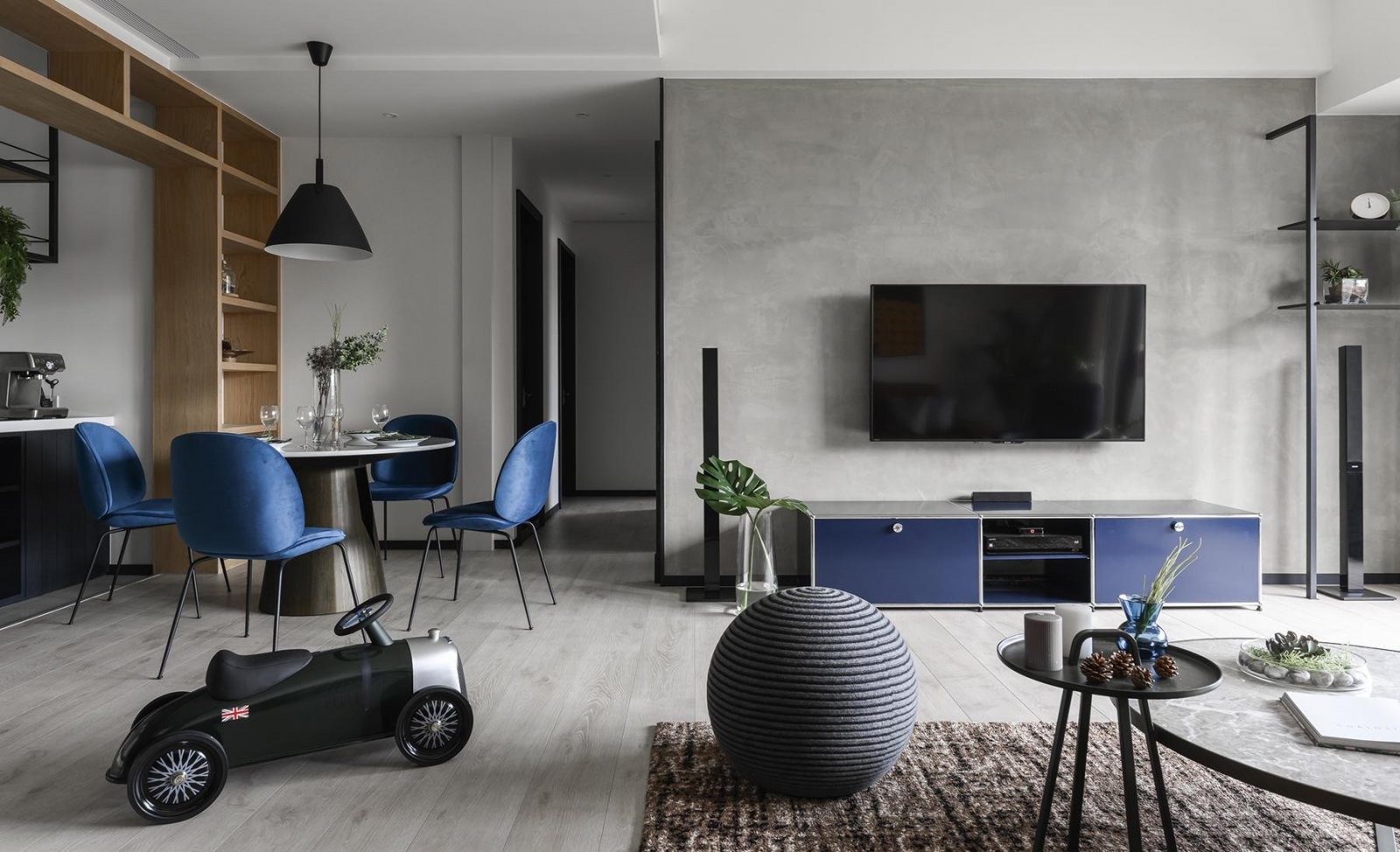 客厅整体采用岩板材质设计,简洁大方