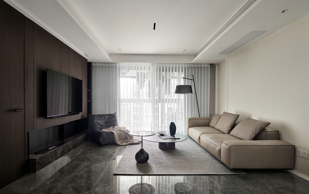 灰色地面,配上 浅色的墙面形成简单而不平凡的设计
