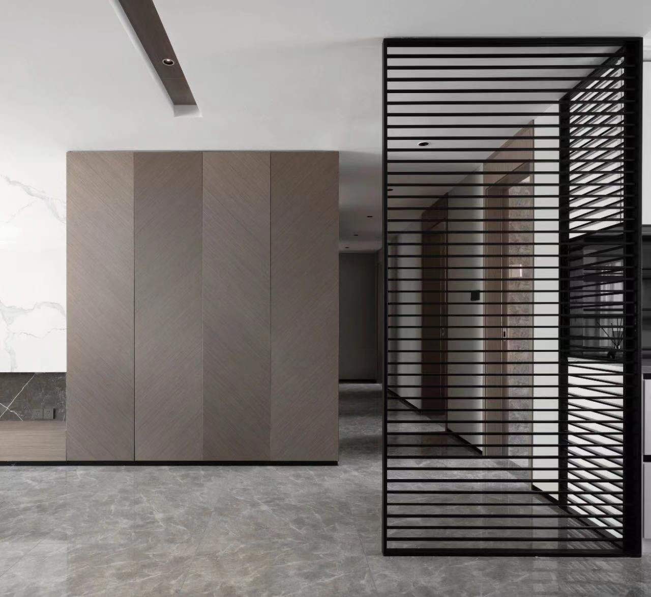 现代风格和意式家具的相互衬托,融合出颇具艺术感的入户视角