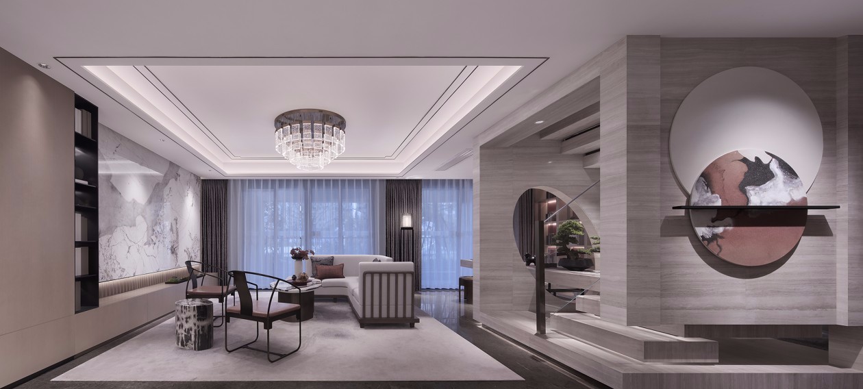 复式双层设计让空间更显从容,一层除并列的厨房与独立卫生间外,整体打造成一个雍容的大客厅
